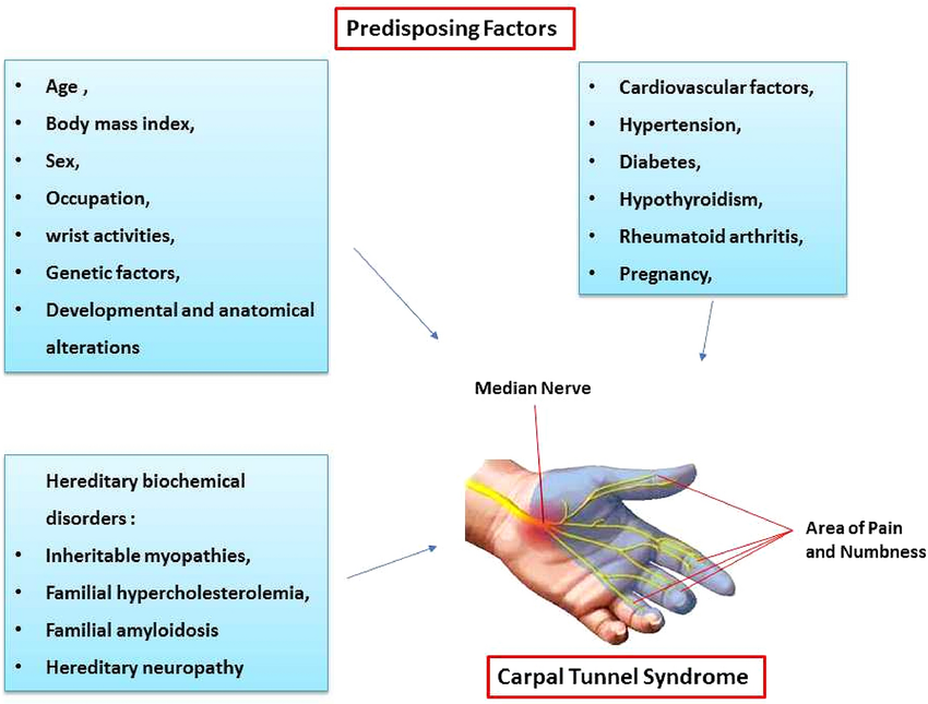برخی از ریسکفاکتورها که میتوانند احتمال ابتلا به سندرم تونل کارپال را افزایش دهند عبارتند از: